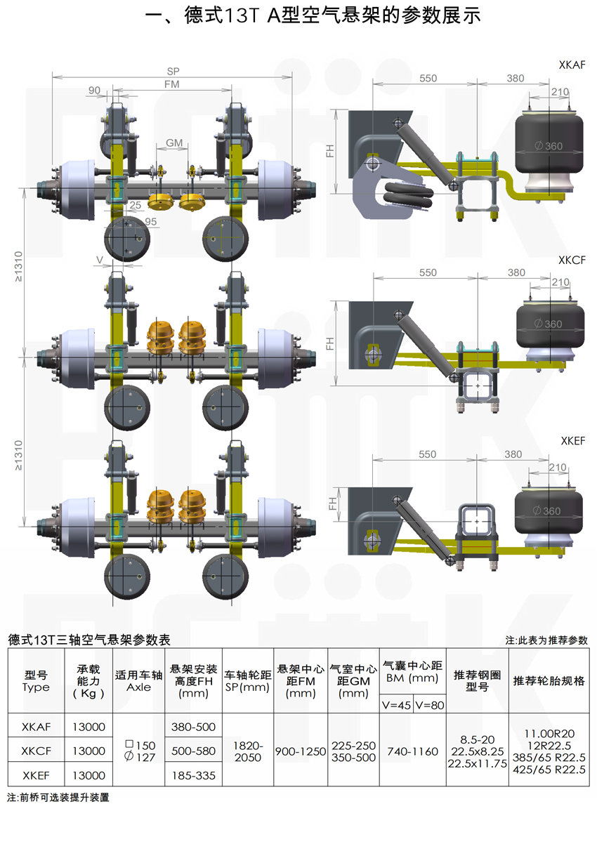 半掛車空氣懸架系統(tǒng)設計技術參數(shù)表 空氣懸掛介紹資料